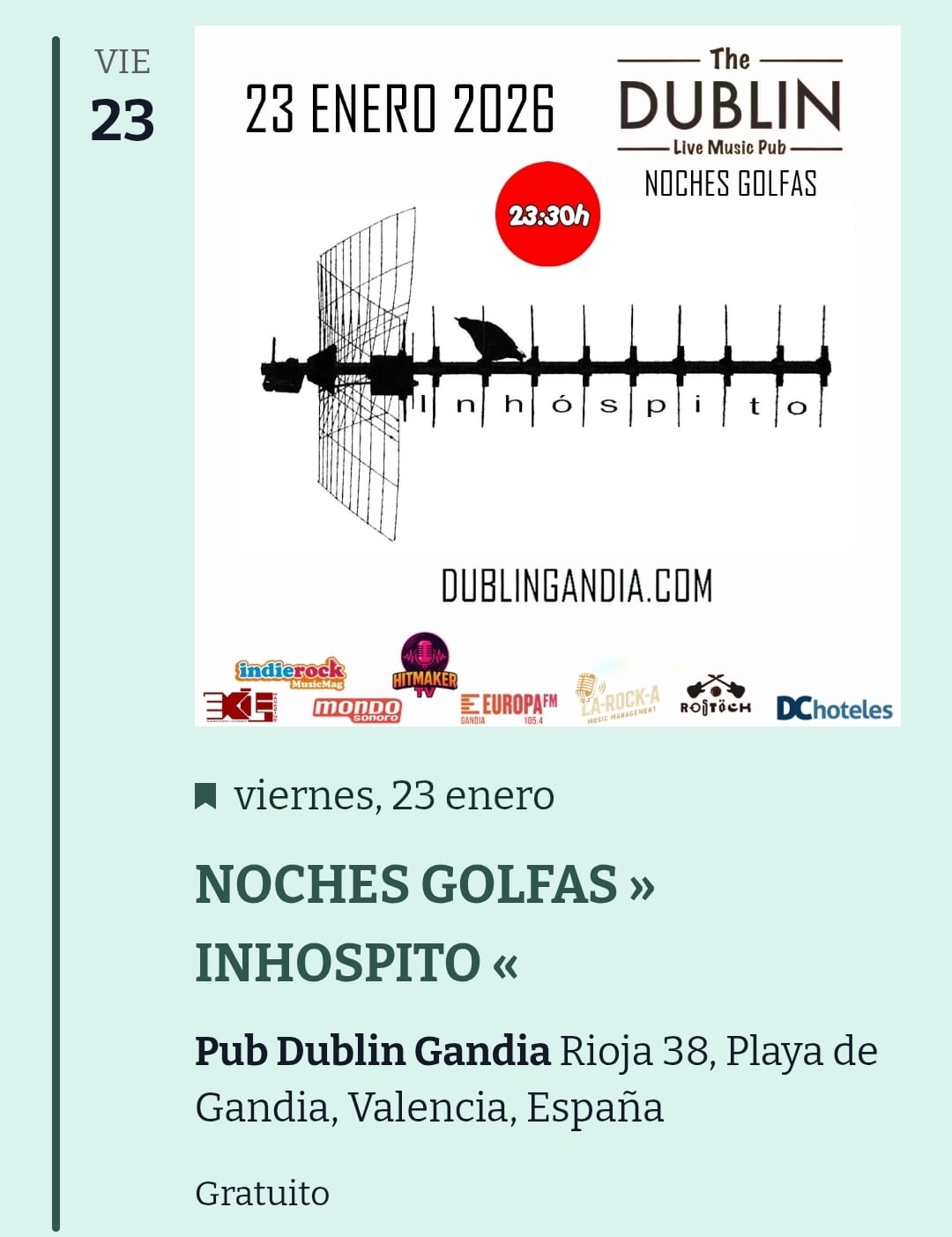 Dublin Gandia Concierto en Dublin Gandia estupendo lugar para tocar y pasarlo bien, muchas gracias a La Roca por todo